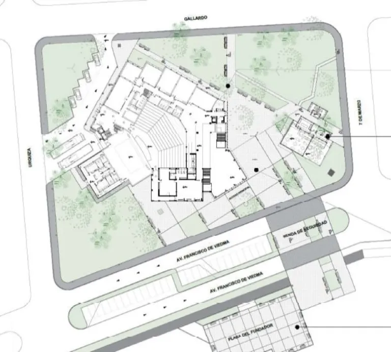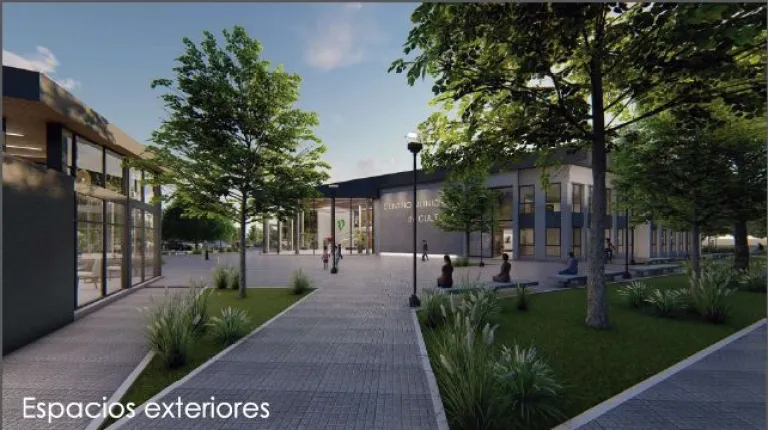 El proyecto contará con un rediseño en su exterior, en los espacios en común. Un mejoramiento en la plaza, con incorporación de árboles que se sumarán a los que ya están, contará con sendas peatonales y se unirá en Centro Cultural con la Plazoleta del Fundador. Se completará con bancos y más luminaria.
