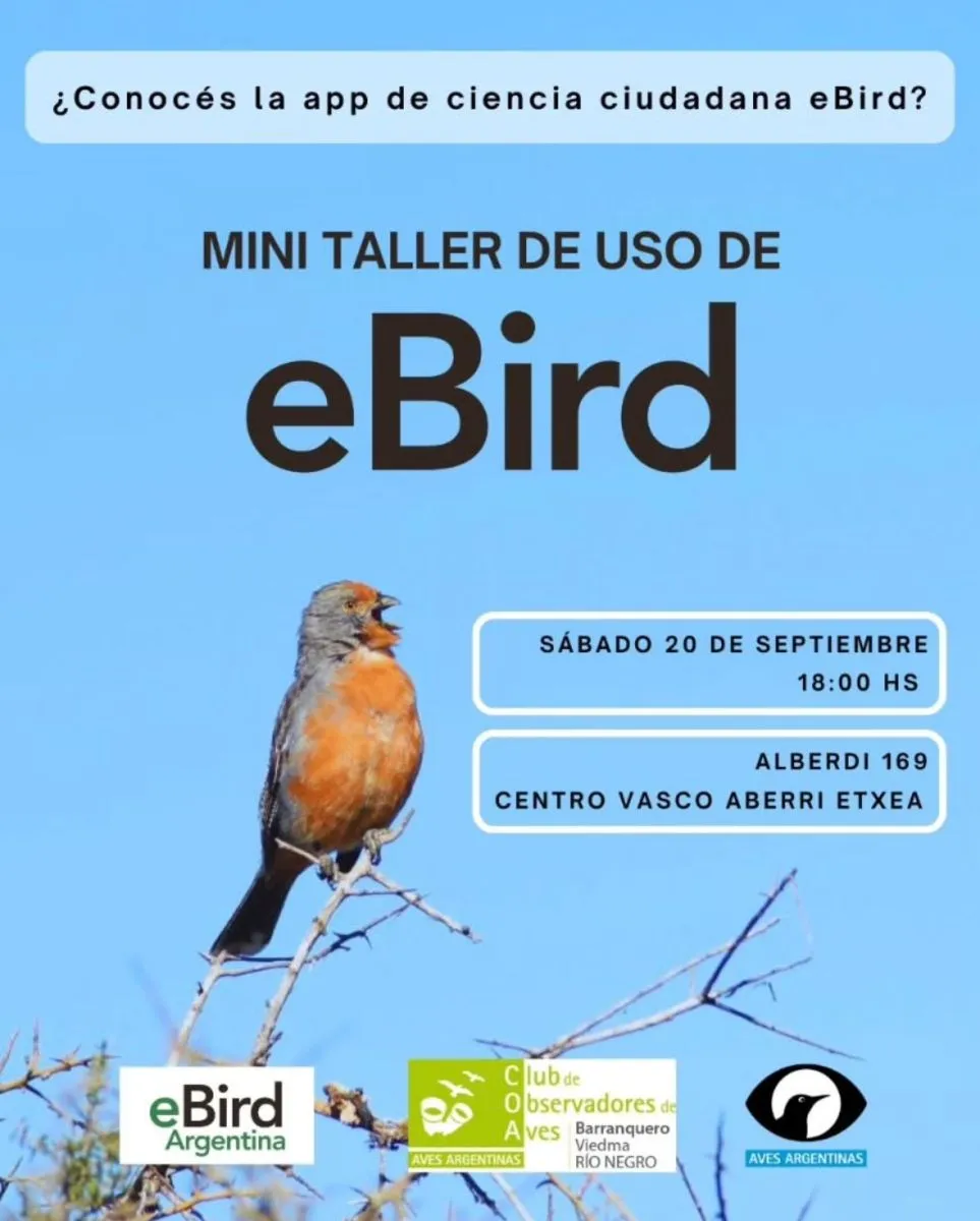 La actividad se desarrollará en el Centro Vasco Aberri Etxea (Alberdi 169, Viedma) y está abierta a toda la comunidad. No se requieren conocimientos previos, por lo que es ideal tanto para personas que se inician en la observación de aves como para quienes desean mejorar sus registros.