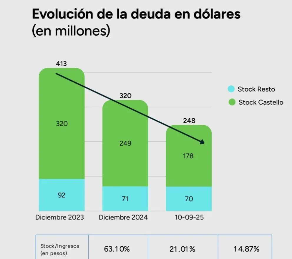 El Gobierno de Río Negro alcanzó en menos de dos años una reducción récord de su deuda en dólares: el stock bajó de U$S413 millones en diciembre de 2023 a U$S178 millones en septiembre de 2025, lo que representa una caída del 39,4% y un alivio directo sobre las cuentas públicas.