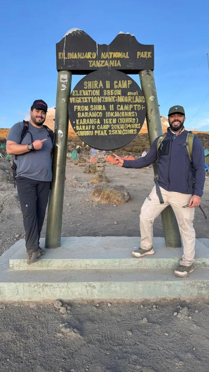 Hernán Rivas y Julián Capici, en la base del Kilimanjaro