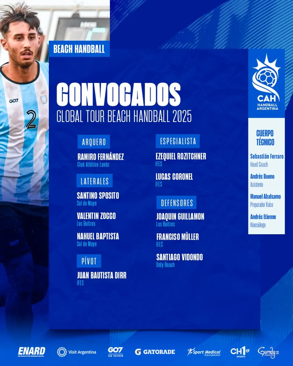 Ellos son el lateral Nahuel Baptista de Sol de Mayo, Santino Apósito del mismo club y Santiago Vidondo de Only Beach para la rama masculina, mientras que Agostina Arcajo (de Deportivo Mitre) vestirá la albiceleste para el plantel femenino.