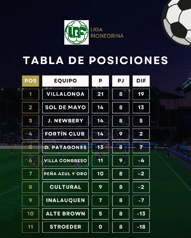 Los últimos cuatro lugares (aunque las posiciones si pueden variar) se definirán entre seis equipos: Deportivo Patagones, Villa Congreso, Peña Azul y Oro, Cultural, Inalauquen, Almirante Brown, mientras que San Lorenzo de Stroeder no sumó puntos y es el primer eliminado del torneo.