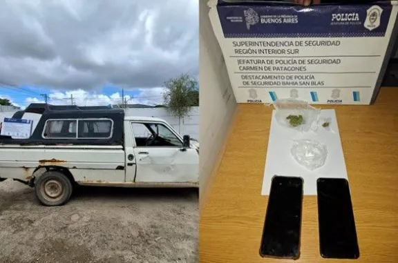 Al intentar identificarlos, uno de ellos huyó a pie, descartando un frasco que contenía clorhidrato de cocaína. Sin embargo, fue alcanzado en cuestión de metros y aprehendido. El segundo individuo también fue detenido tras encontrarse en su posesión un envoltorio con sustancia vegetal compatible con marihuana.
