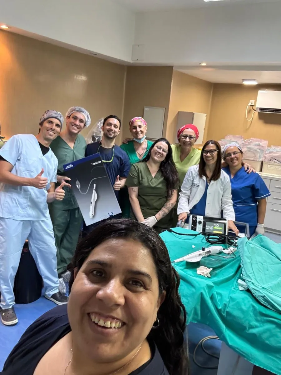 El equipo que le salvó la vida al paciente se completa con el cardiólogo intervencionista Dr. Francisco Goldaracena, la anestesióloga Dra. Ada Britos, los técnicos radiólogos Tomás Berttinotti (Boston Medical) y Luciano Rima, la instrumentadora y jefa de quirófano Bárbara Marcos, la técnica radióloga Rocío Sepúlveda Palacios y la enfermera Cristina Miño.