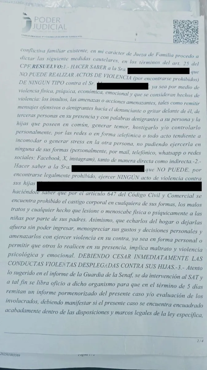 "También hice una denuncia porque ella empezó a escribir cosas contra mi persona en redes sociales. Hay medidas que dispuso la jueza, también la denuncia que hice yo por el escrache en redes sociales fue desestimada. Nadie hace nada. Ella tiene las mismas medidas que yo, las está incumpliendo todas, se puede comprobar, es fácil de comprobar, y la Justicia no hace nada”, siguió.