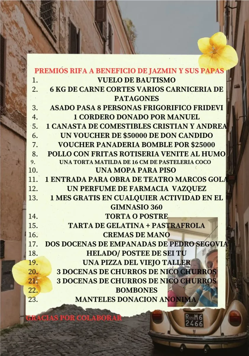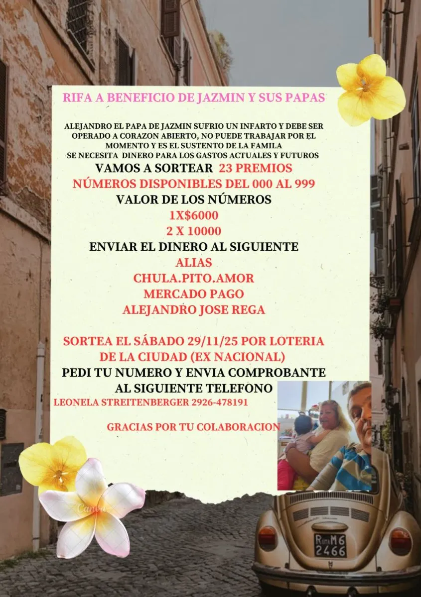 “Yo soy el sostén de la familia y no puedo trabajar por tres meses. Por eso decidimos hacer esta rifa. Leonela, que es como una tía postiza de Jazmín, nos ayudó a organizar todo”, explicó.