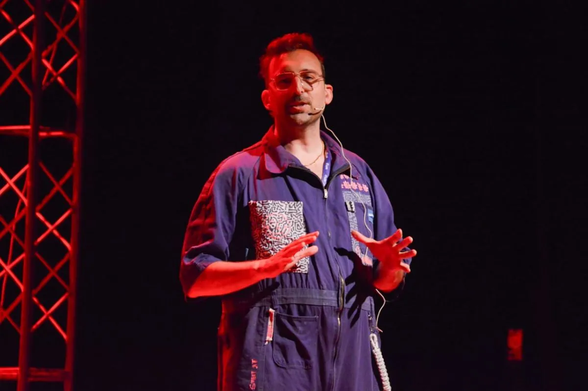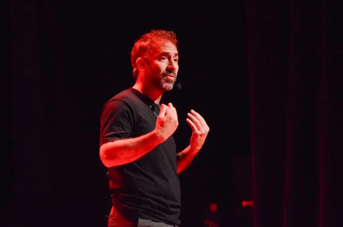 San Spiga y su inseparable amor por Maradona y por el arte, ya desde temprana edad, en el TEDxViedma. Fotos Emanuel Mirenghi para NoticiasNet.