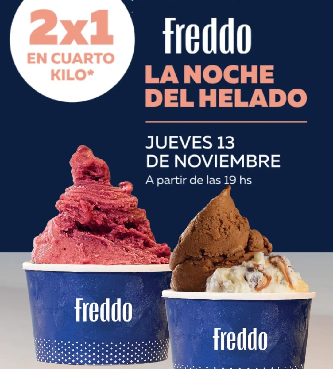 La convocatoria es para este Jueves 13 de noviembre de 2025, a partir de las 19:00 hasta el cierre. La promoción consiste en 2x1 en un cuarto kilo de helado, por lo tanto  Freddo Viedma invita a vecinos y visitantes a sumarse a esta noche de sabor, alegría y tradición argentina. Porque cuando se trata de disfrutar un buen helado, toda excusa es perfecta. Encontralos en el Food Park del Complejo del Río Viedma. @freddoviedma.