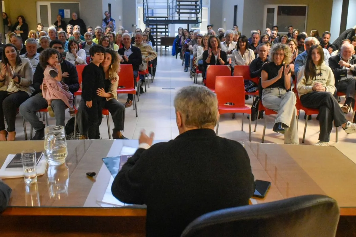 La actividad se realizó en un salón central colmado de público y contó con la participación del periodista Juan Gorosito, quien acompañó la exposición.
