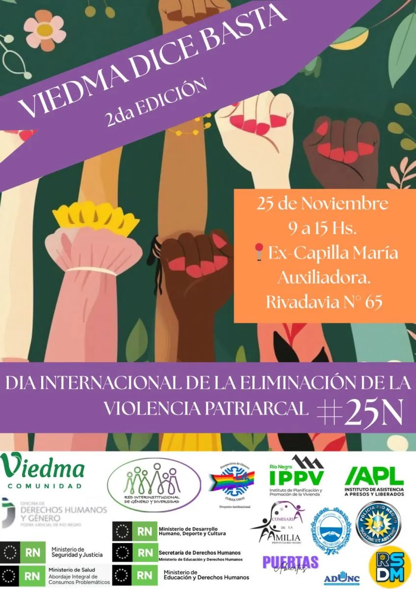 La actividad es organizada por la Red Interinstitucional de Género y Diversidad de Viedma, que nuclea a la Municipalidad y varias organizaciones. La propuesta se llevará a cabo el martes 25 de noviembre, desde las 9.30 hasta las 15, en la plaza seca, ubicada en la Manzana Histórica, con un cronograma amplio de intervenciones y presentaciones.