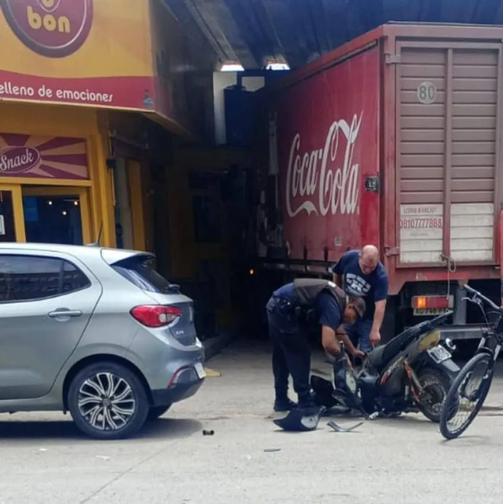 Un auto y una motocicleta protagonizaron un accidente frente al clásico Snack.