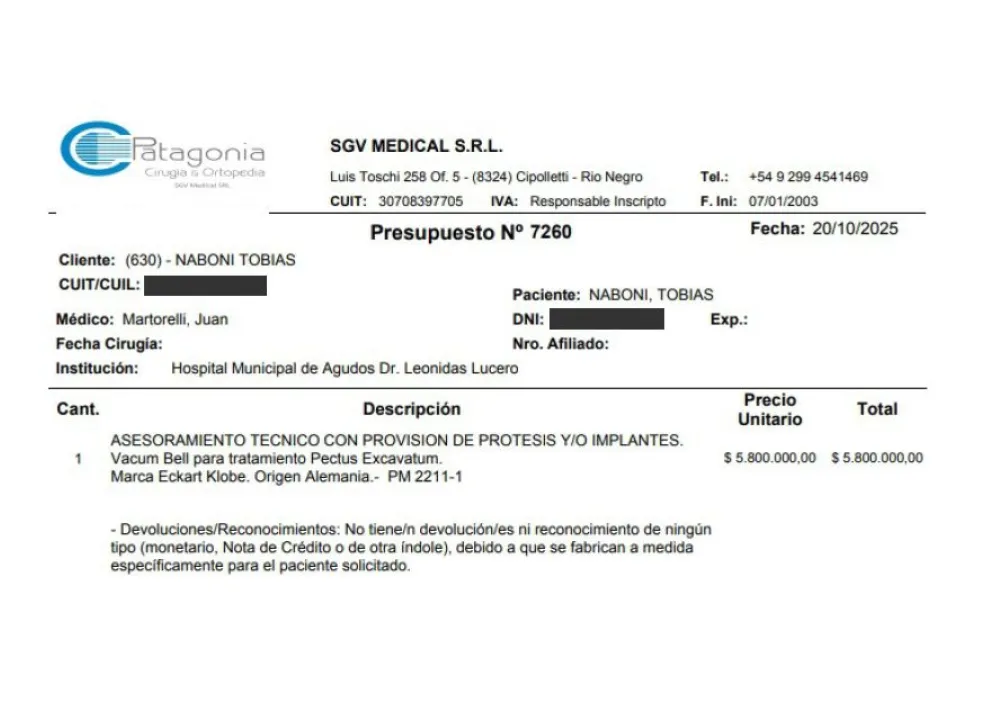 Para mejorar su salud y calidad de vida, Tobías necesita con urgencia una campana de vacío (VacuumBell). Se trata de un dispositivo que, mediante succión controlada, ayuda a levantar el esternón y corregir la deformidad de manera progresiva.