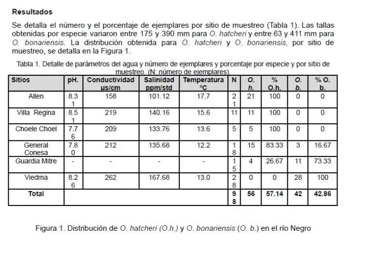 En el informe, reza: “Se observó una delimitación muy marcada en la distribución de ambas especies. Allen, Villa Regina y Choele Choel se capturó O. hatcheri (pejerrey patagónico), mientras que en Viedma solo se obtuvo O. bonariensis (pejerrey bonaerense). En General Conesa y Guardia Mitre existe un solapamiento gradual de ambas especies”.