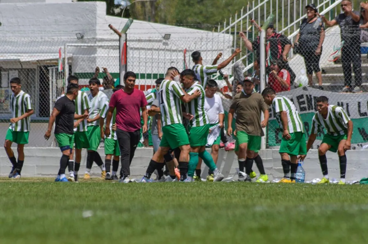 Festejo albiverde en la Reserva del fútbol barrial de Patagones. Fotos: Emanuel Mirenghi para NoticiasNet.