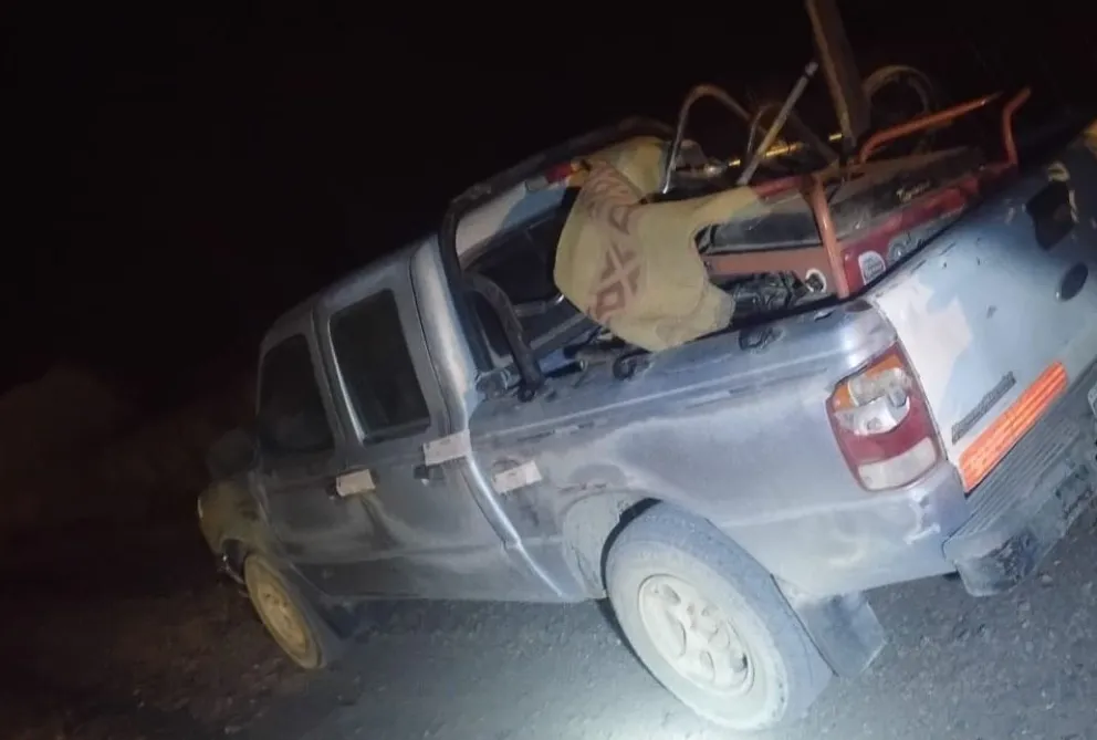 La camioneta interceptada por personal de la comisaría 41º de San Javier e integrantes de la Brigada Rural es una Ford Ranger de color gris.  Junto con el novillo faenado, encontraron en la caja un arma de fuego larga, un martillo, caja de herramientas y una carretilla.