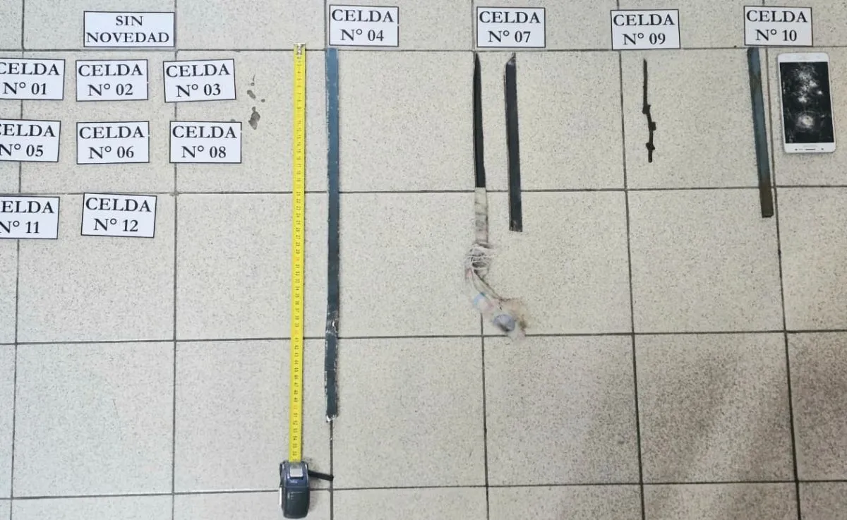 En paralelo, se detectaron más armas caseras en otros pabellones. Algunas estaban ocultas entre los barrotes, otras camufladas en muebles o detrás de objetos personales. Los elementos secuestrados incluían hierros estructurales pintados, planchuelas afiladas y empuñaduras improvisadas con tela o plástico. En total, se inspeccionaron más de 10 sectores, con resultados positivos en al menos cinco de ellos.