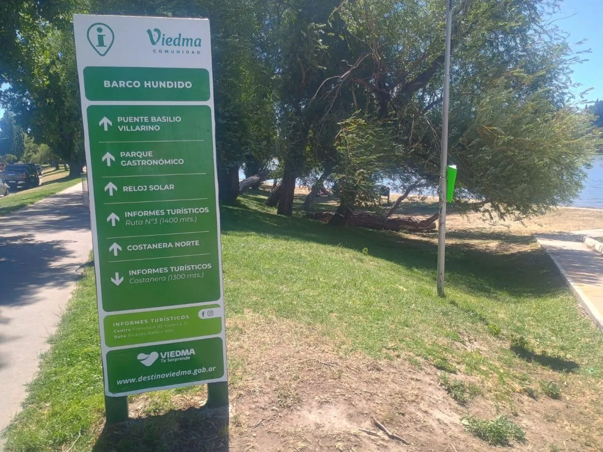 La costanera de Viedma incorporó en esta temporada un nuevo espacio habilitado como balneario, ubicado a grandes rasgos entre el barco hundido y el puente Basilio Villarino, aunque en la práctica el sector de uso recreativo es más acotado.