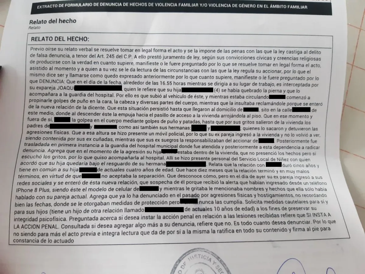 Ella denunció por cuarta vez en menos de un año a su expareja, Joaquín, con quien tiene una hija de 4 años -también tiene un hijo de 10 de otra relación- por golpes y maltratos. Con una medida de prohibición de acercamiento vigente, su ex empleó una coartada infalible para lograr que ella se subiera a su auto: le dijo que la nena se había quebrado una pierna y que la tenía que llevar al hospital. La información era falsa.