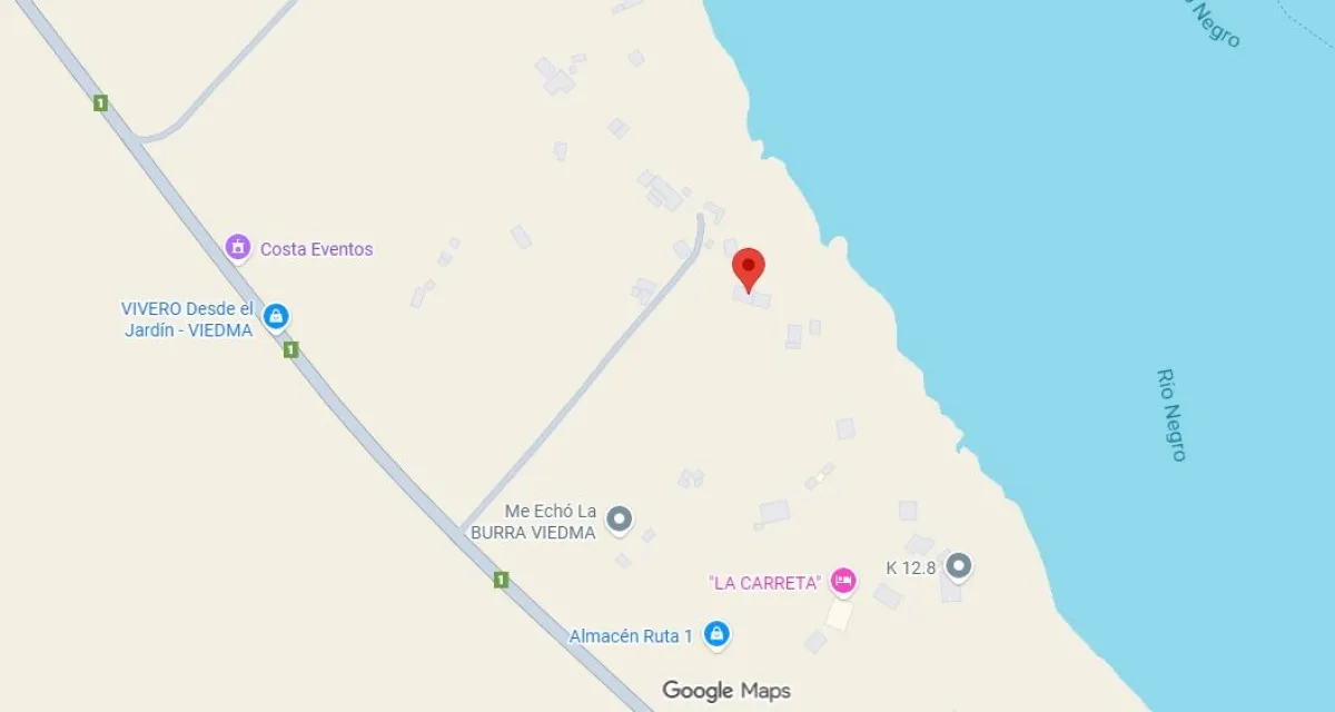 Se trata de una cabaña muy cercana al río Negro, sobre la ruta Provincial 1, a la altura del kilómetro 12,5. De acuerdo a la plataforma de Google Maps, es un sitio alejado de la vera de la ruta, en un camino donde hay que pasar con un vehículo de tracción pesada.