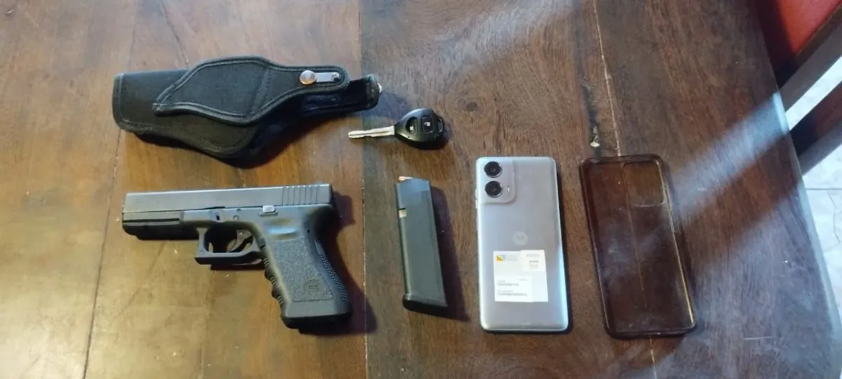 A su vez, en el Loteo Silva, se incautaron un celular Motorola, un arma de fuego calibre 9 milímetros marca Glock con su cargador y municiones, además de un Toyota Etios gris.