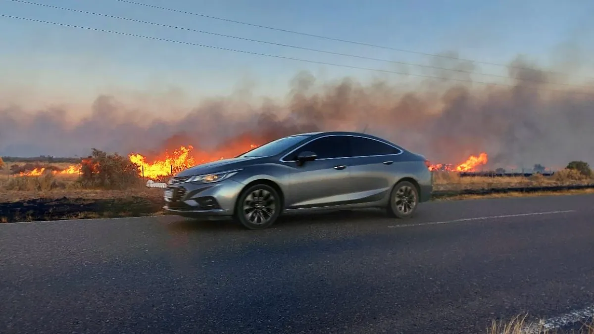 Las llamas avanzaban en momentos de un intenso tránsito vehicular rumbo a Viedma.