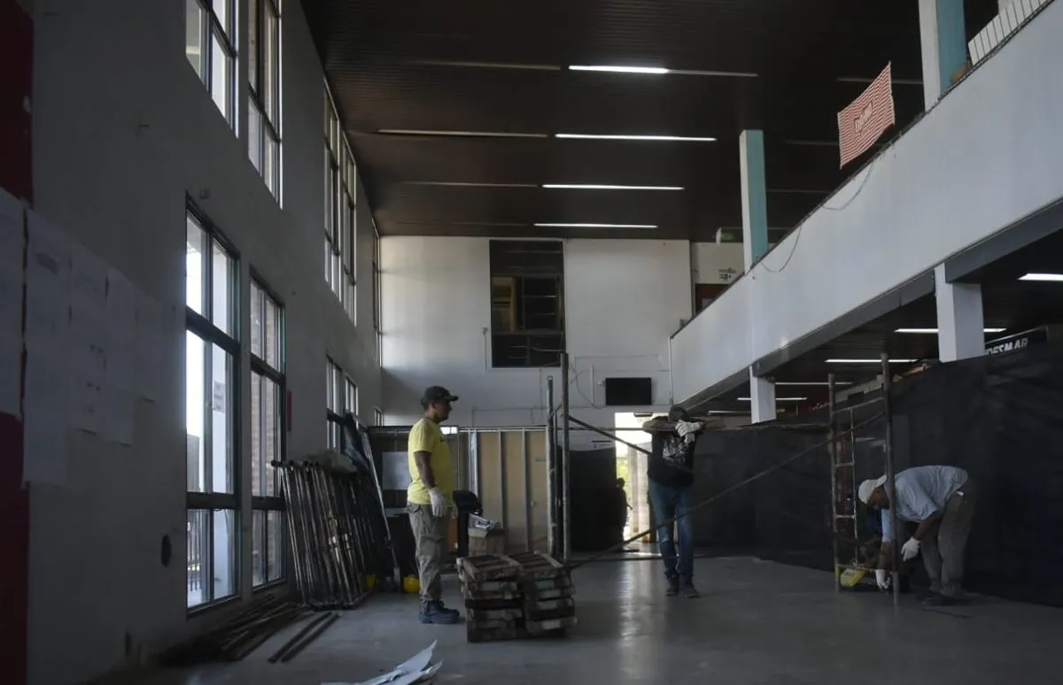 Las tareas comenzaron de temprano haciendo una separación a partir de las columnas que dividen el hall central y la línea de boleterías. Sobre las columnas se instalarán paredes de durlock con el propósito de la galería más grande se ubiquen las futuras oficinas del centro de monitoreo del Comando de Emergencias 911 de esta capital.