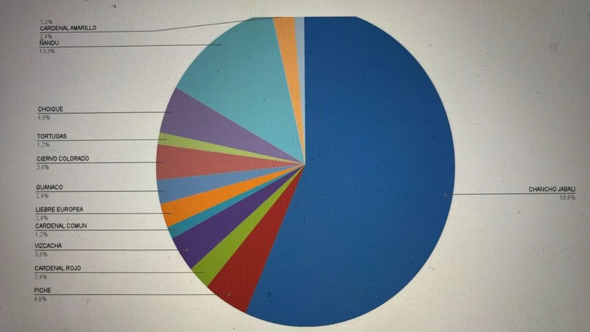 Además de los jabalíes, se han registrado infracciones por la captura de otras especies. Los datos indican que el Cardenal Amarillo y las tortugas tienen un bajo porcentaje de infracciones, con 1,2% cada uno. Por otro lado, especies como el Choique alcanzan un 4,8%, el Ciervo Colorado un 3,6% y el Guanaco un 2,4%. Sin embargo, es el jabalí el que domina las estadísticas con un alarmante 56,6% de las infracciones.
