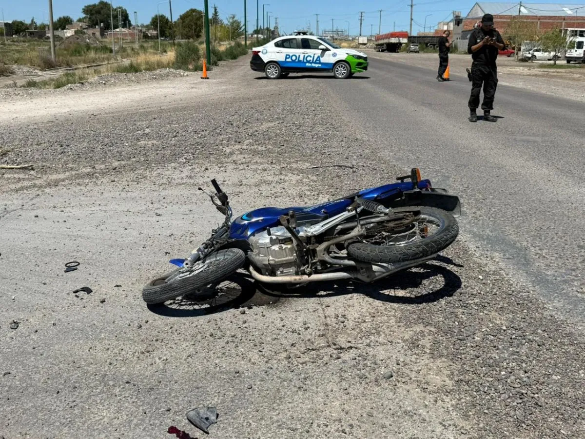 A las 13:30 horas de hoy se produjo un accidente entre un motociclista y el conductor de una camioneta Chevrolet Luv, entre la avenida Perón y el boulevard Ituzaingó. Rubén Pebe, de 63 años, sufrió un traumatismo de cráneo severo y media hora después falleció en el hospital Artémides Zatti.