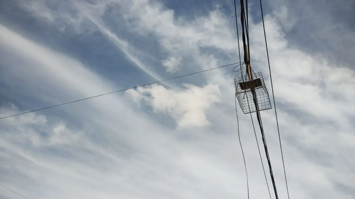 El basurín que estaba atado al palo quedó enganchado en los cables