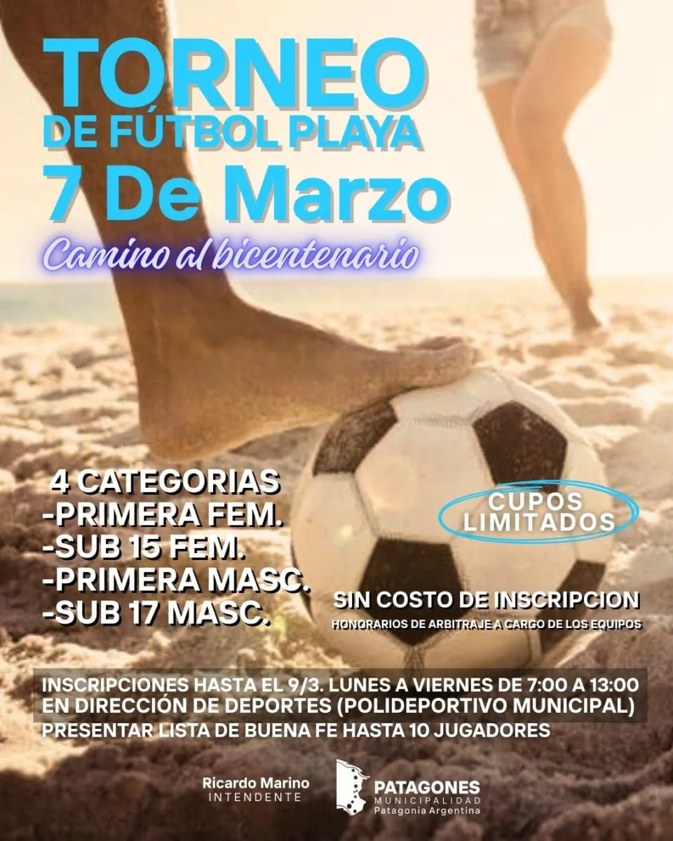 Ya están abiertas las inscripciones para el Torneo de Fútbol playa 7 de Marzo "Camino al Bicentenario"