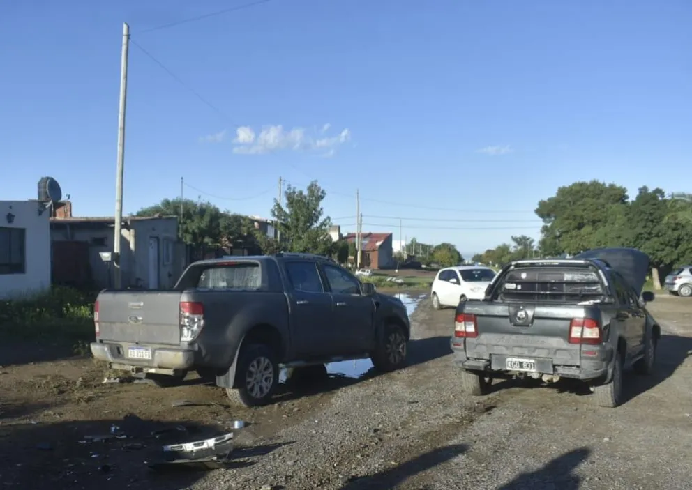 Por lo que se pudo apreciar en el lugar el siniestro vial, más allá de la fuerte colisión, solamente involucró a las dos camionetas y, en consecuencia, los vecinos del mencionado sector poblacional no sufrieron inconvenientes en esa esquina donde no hay asfalto.