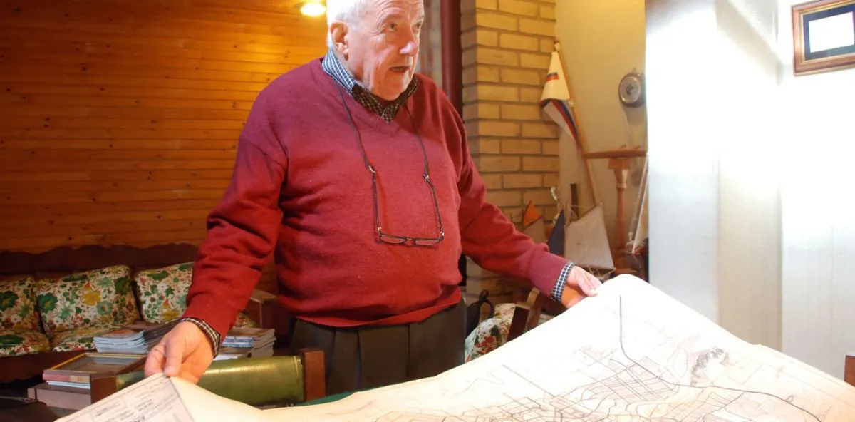 Silvio Oscar Sanguinetti mostrando los planos: Foto: José López-Clarín