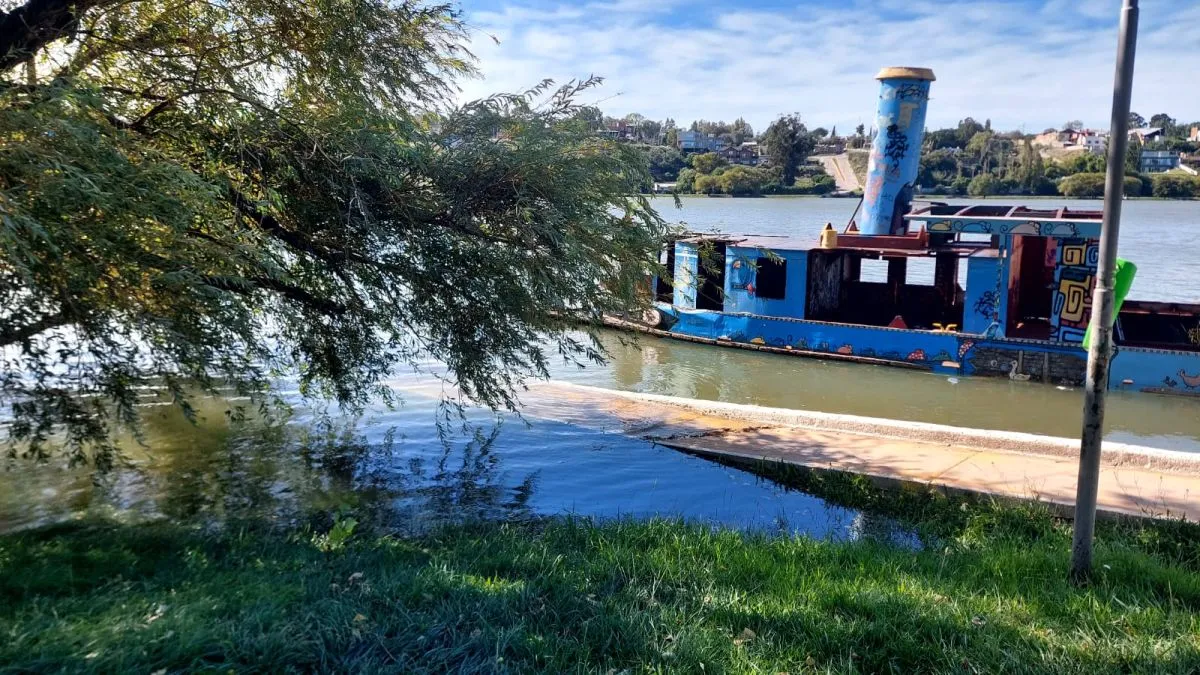 La crecida fue visible en distintos puntos de la costanera, donde el río avanzó sobre sectores verdes, senderos y estructuras que habitualmente permanecen fuera del agua. Entre los lugares más afectados se destacó el muelle de guardavidas de la calle Colón, que quedó prácticamente cubierto, así como la zona del Barco Hundido.