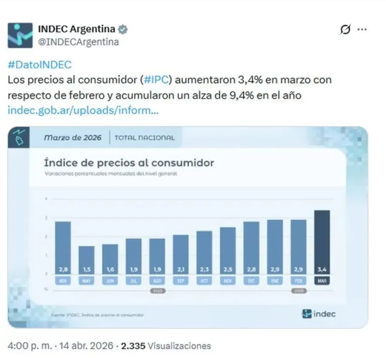 Lee también: El Indec difunde la inflación de marzo: estiman que alcanzaría el 3%