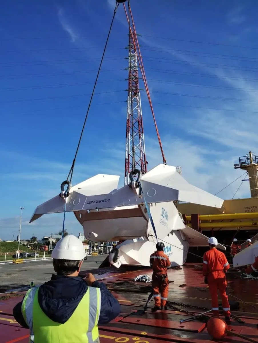 Las anclas y cadenas que amarrarán las monoboyas del Vaca Muerta Oíl Sur ya están en Argentina