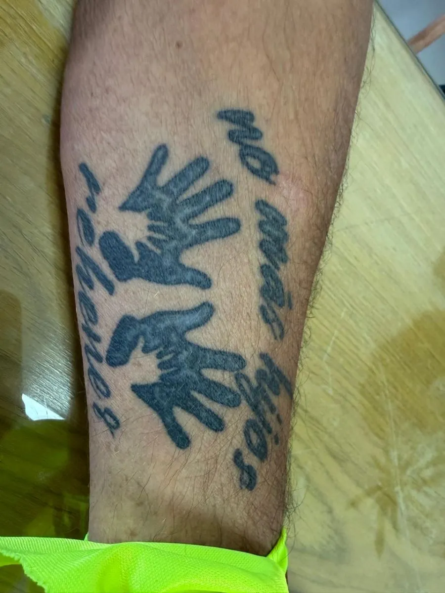 El tatuaje que lleva Cruciani ante una vida marcada por el dolor.